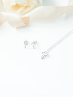 Minimalistički i elegantan, ovaj set sastavljen je od lančića i minđuša sa simbolom krsta, izrađenih od srebra visokog sjaja. Idealan je kao poklon za krštenje, pričest, rođenje deteta ili kao lični znak duhovne snage.