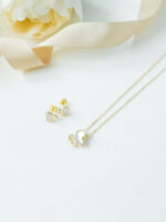 Ogrlica i minđuše sa cirkonima u obliku leptira. Obojene gold rodijumom.