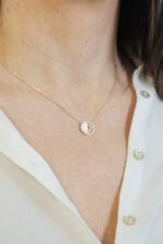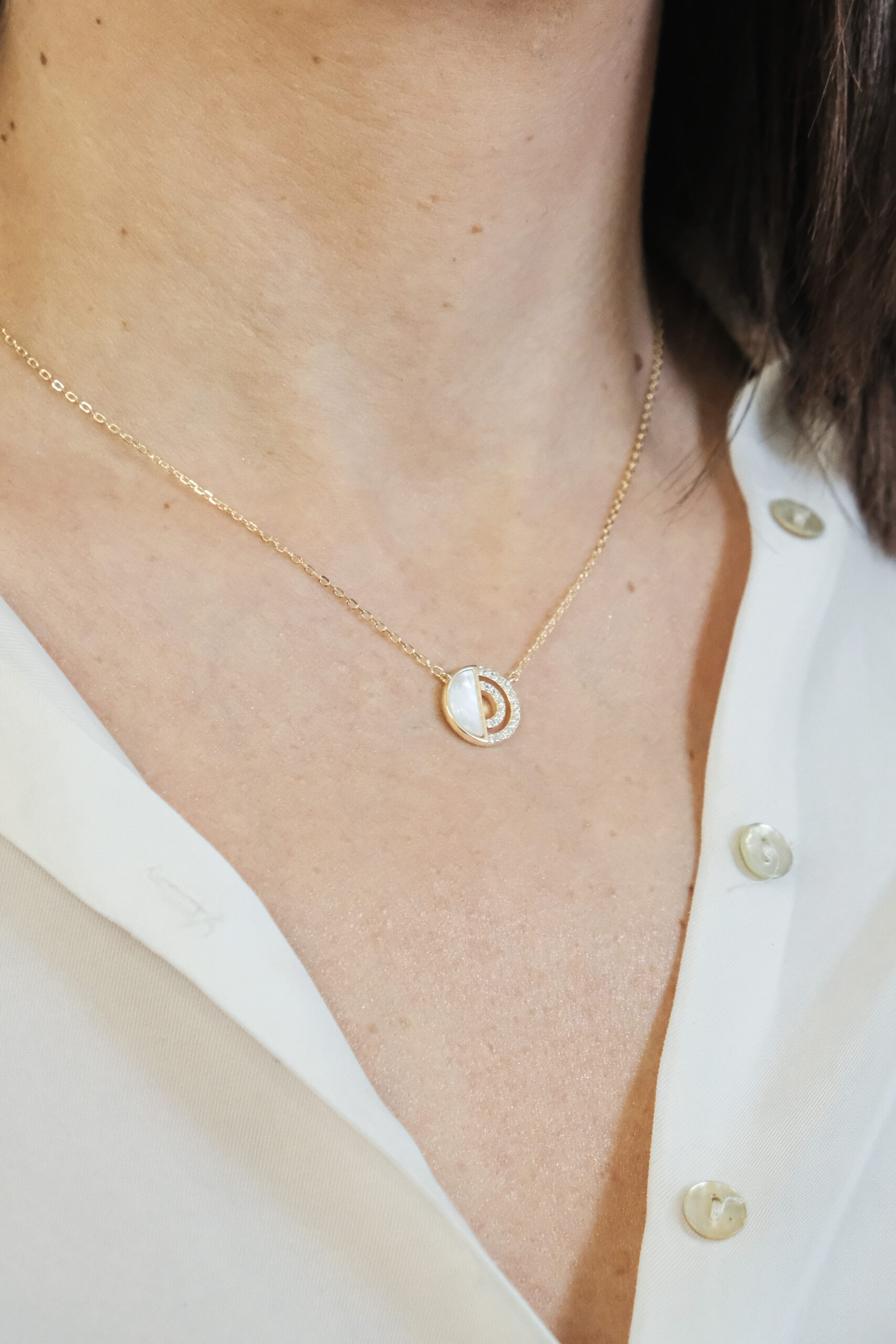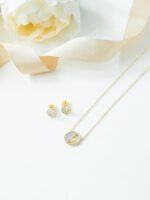 Ogrlica i minđuše krug sa sedefom i cirkonima.