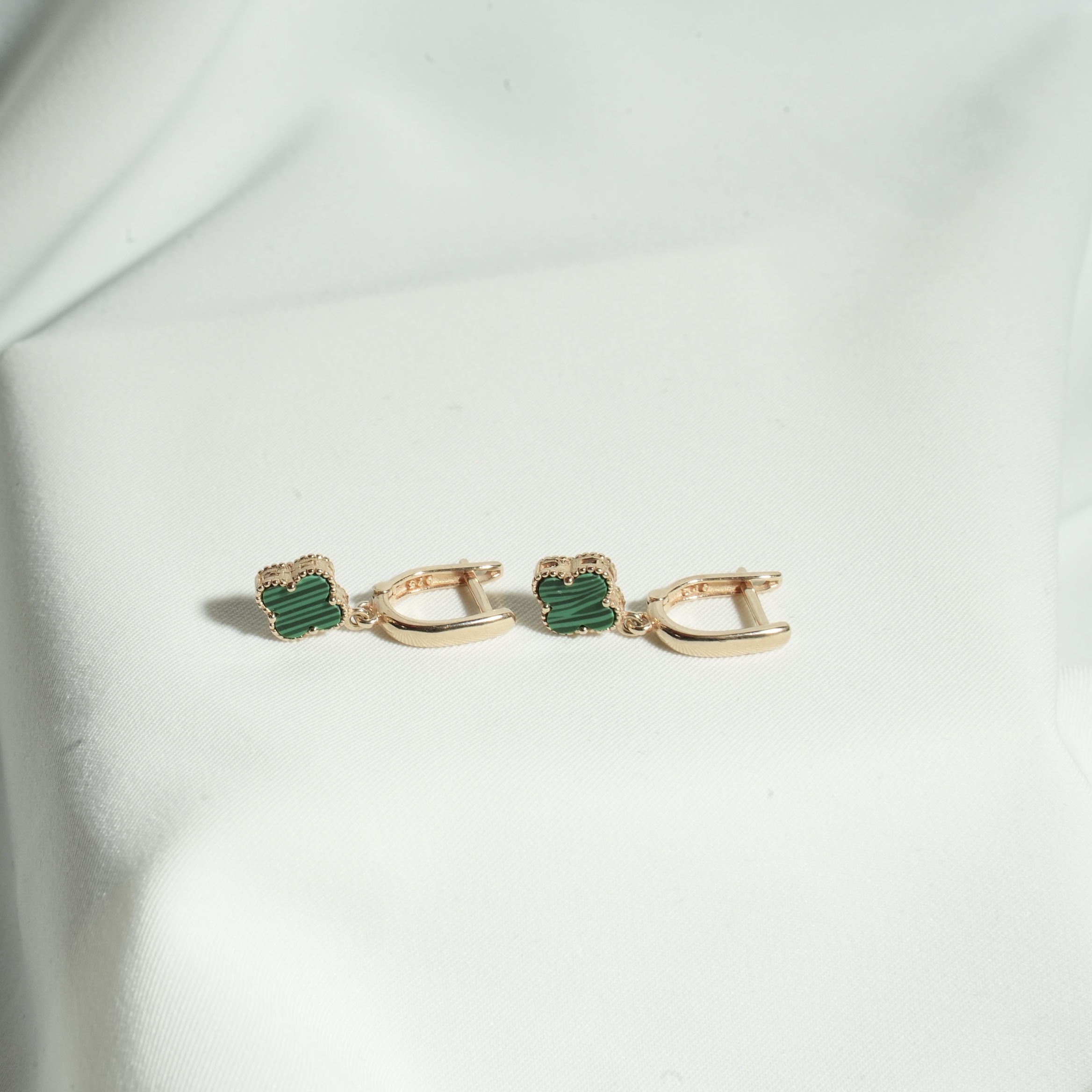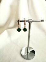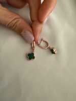 Istaknite svoju ženstvenost i veru u sreću uz ove prelepe minđuše u obliku deteline. Kombinacija rozegold boje i duboko zelene nijanse donosi osećaj elegancije i stila, dok detaljna obrada daje posebnu notu luksuza. Lagane i udobne za nošenje tokom celog dana – idealne za svaki dan ili kao suptilan aksesoar za posebne prilike.