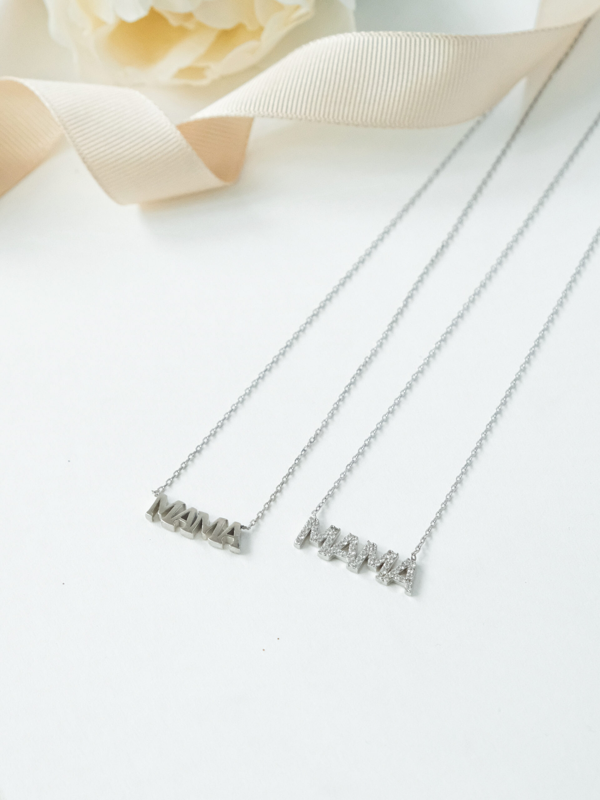 Srebrni lančić „Mama“ sa cirkonima – nežan sjaj najlepše reči